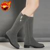 Autumn Winter Elegant with Low Heels Round Toe Rhinestone Ladies Mid Calf Shoes Comfortable Fleece-Lined Women's Half High Boots