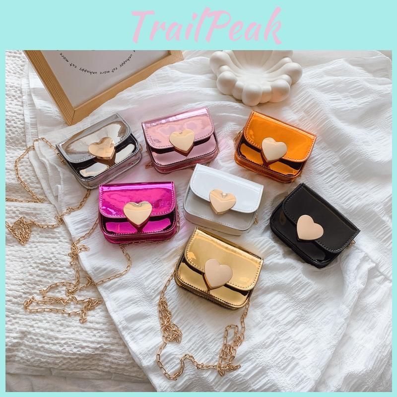Girls Childrens Pu Peach Heart Mirror Bag Lightweight Material Kindergarten