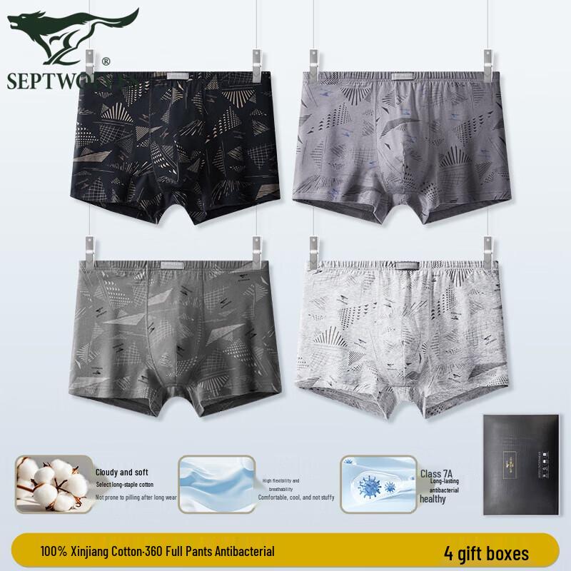 Septwolves 7A Antibacterial 100% Cotton Boxer Briefs for Men