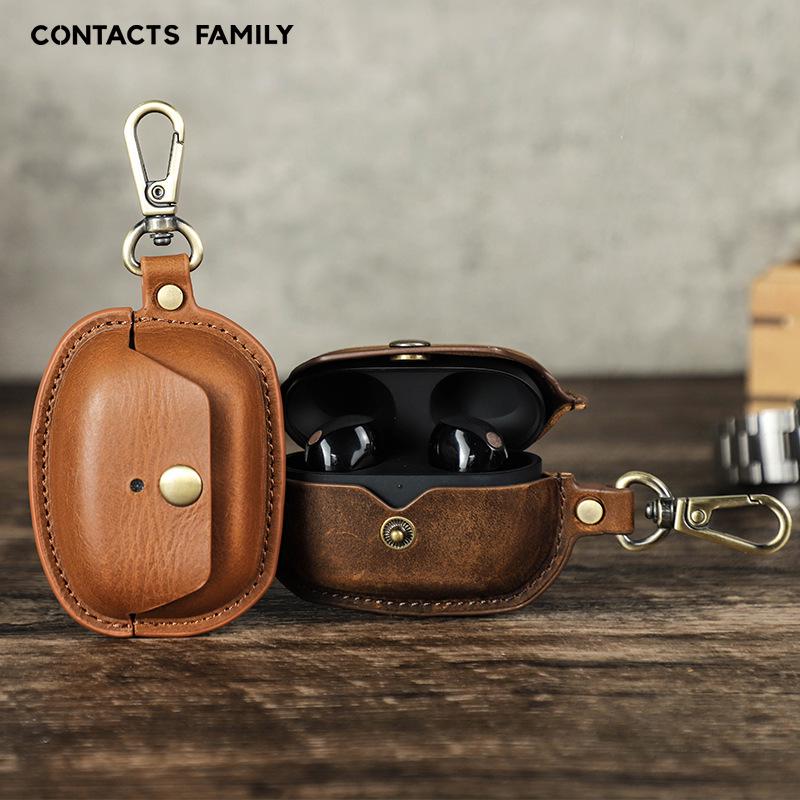 Funda para Auriculares Sony WF-1000XM5 de Cuero Genuino a Prueba de Caídas con Gancho