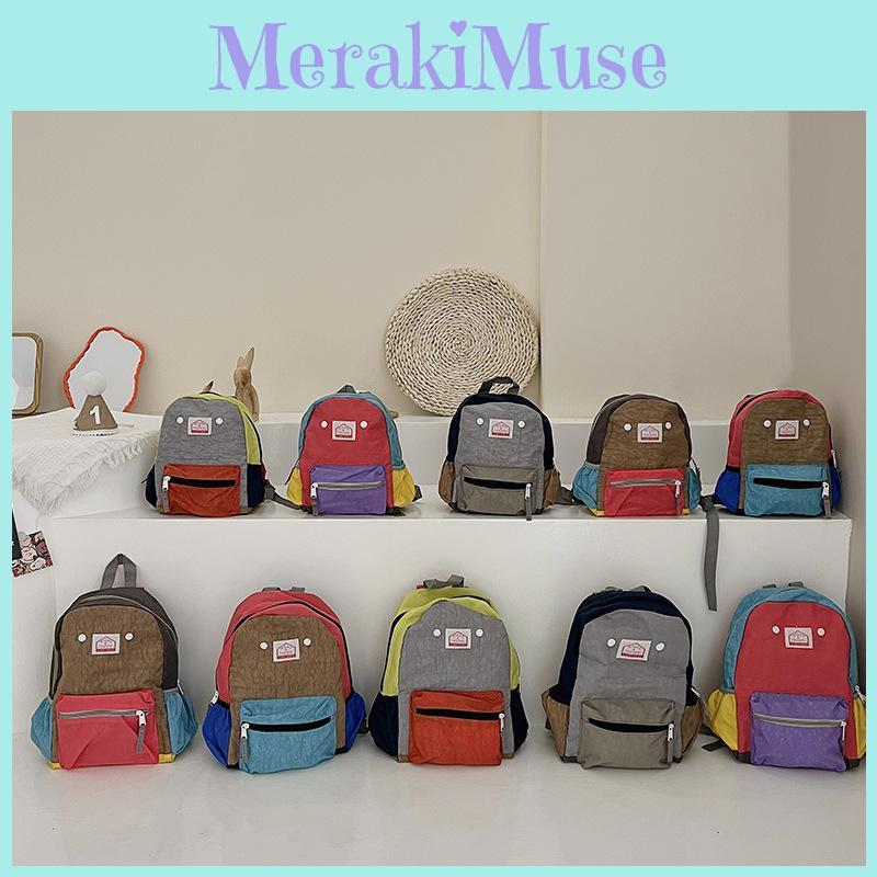 Blocked Color Canvas Backpack With Nylon Simple For Children Spine Backpack