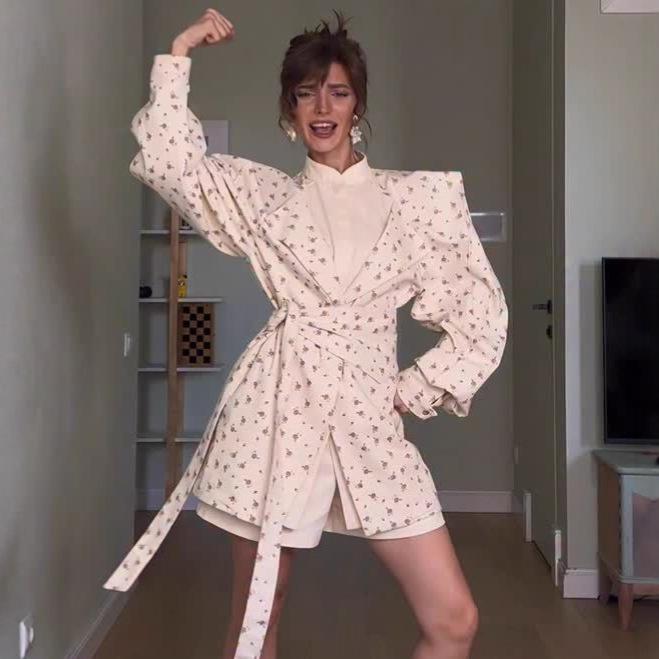 Women's Floral Tie-up Suit Jacket for Work and Casual Wear