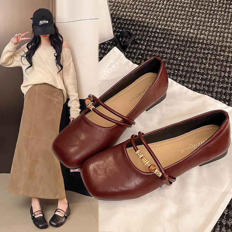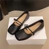 Temperament square head flat sole shoes women's 2025 new spring and autumn French retro Mary Jane small leather shoes light mouth commuter shoes