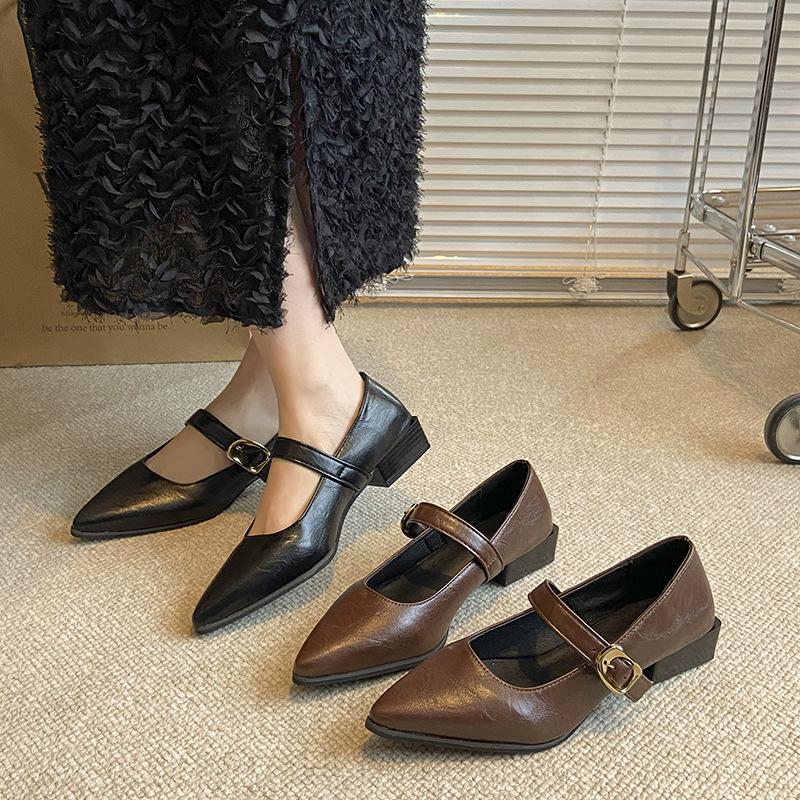 Pointed single shoes women's spring and autumn thick heel soft leather with Mary Jane shoes 2025 new versatile black high heels