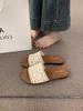 2025 summer new hollow lace flat-bottomed slippers women's simple solid color one-word drag casual women's cool slippers
