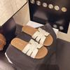 Flat-bottomed slippers women's outerwear 2025 summer fashion beach sandals versatile Internet celebrity temperament one word sandals women's trend