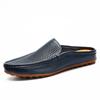 Summer White Driving Gommino Men's Half Slippers Decumbent Corydalis Tuber Heel Closed Toe Casual Leather Shoes British Lazy Sandals