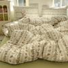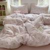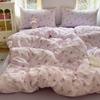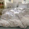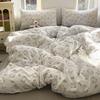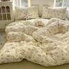 Juego de cama de cuatro piezas de doble hilo estampado, agradable para la piel y transpirable, sábanas lavadas, fundas nórdicas, fundas de almohada, juegos