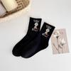 Cartoon Puppy Mid-calf Socks for Women with Contrasting Color Edges, Men and Women Wear Pure Cotton Retro Trendy Socks