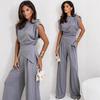 Eleva tu guardarropa de verano con este elegante conjunto de traje liso de manga corta y pantalón. Confeccionado íntegramente en poliéster, este conjunto ofrece tanto comodidad como un aspecto elegante y moderno.. Su patrón sólido proporciona un atractivo versátil y atemporal, perfecto tanto para ocasiones formales como casuales.. El diseño de manga corta garantiza la transpirabilidad, lo que lo convierte en una opción ideal para los días más cálidos.. Ya sea que asistas a un evento de verano o a un día informal, este conjunto promete mantenerte chic y cómoda.