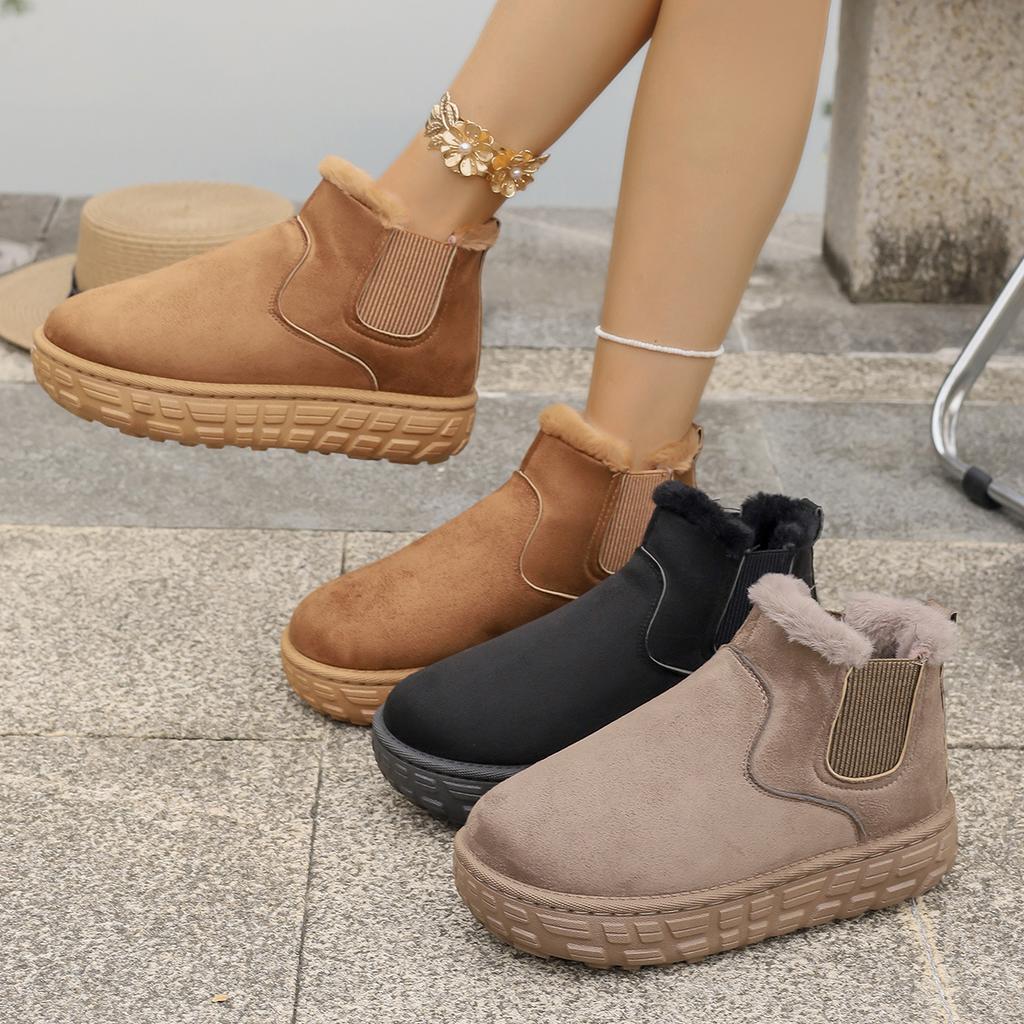 Foreign trade new autumn and winter tire snow boots women's warm solid color large size elastic band thick sole non-slip short cotton shoes