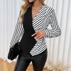 YYFS Blusas y camisas con cuello en V de manga larga con estampado de rayas informales para primavera y otoño para mujer