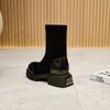 Black boots women's long boots thick-soled 2025 new autumn and winter thick-heeled elastic thin boots women's one-pedal casual shoes