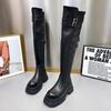 Botas negras retro de plataforma alta para mujer, botas vaqueras occidentales, tacón grueso, botas altas de caballero, botas sobre la rodilla, moda