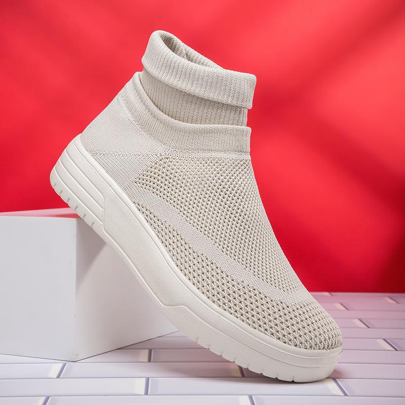 Otoño nuevos calcetines de pareja zapatos malla transpirable zapatillas casuales de caña alta zapatos deportivos de punto volador con suela gruesa para hombre