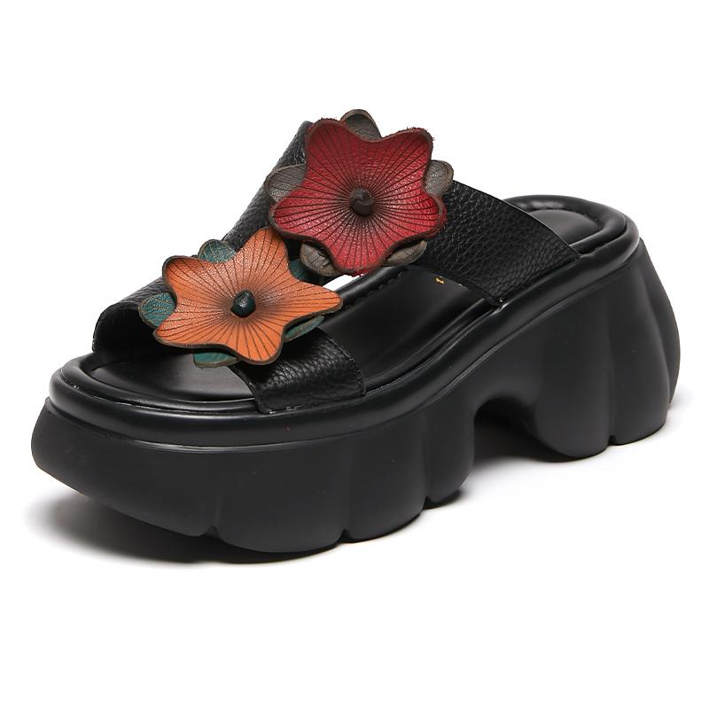 GKTINOO Genuine Leather Sandals Floral Women Slippers Summer Shoes Platform Outside Slides Thick Soles Leisure Ladies Slippers