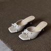 2025 New Summer Women Square Toe High Heel Slippers Fashion Butterfly-knot Dress Slide Ladies Evening Party Sandalias