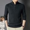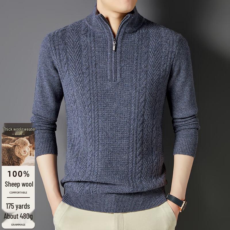 FengXun Men's 100% Pure Wool Half-Zip Stand Collar Knit Sweater FXT6477