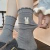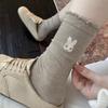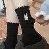 Cartoon Embroidered Socks, Girls' Lace, Cute Little Rabbit Socks, Pure Cotton Mid-calf Pile Socks