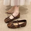 Small retro style leopard print thick heel Mary Jane shoes women's 2025 autumn and winter new square head high heel light mouth single shoes