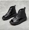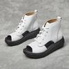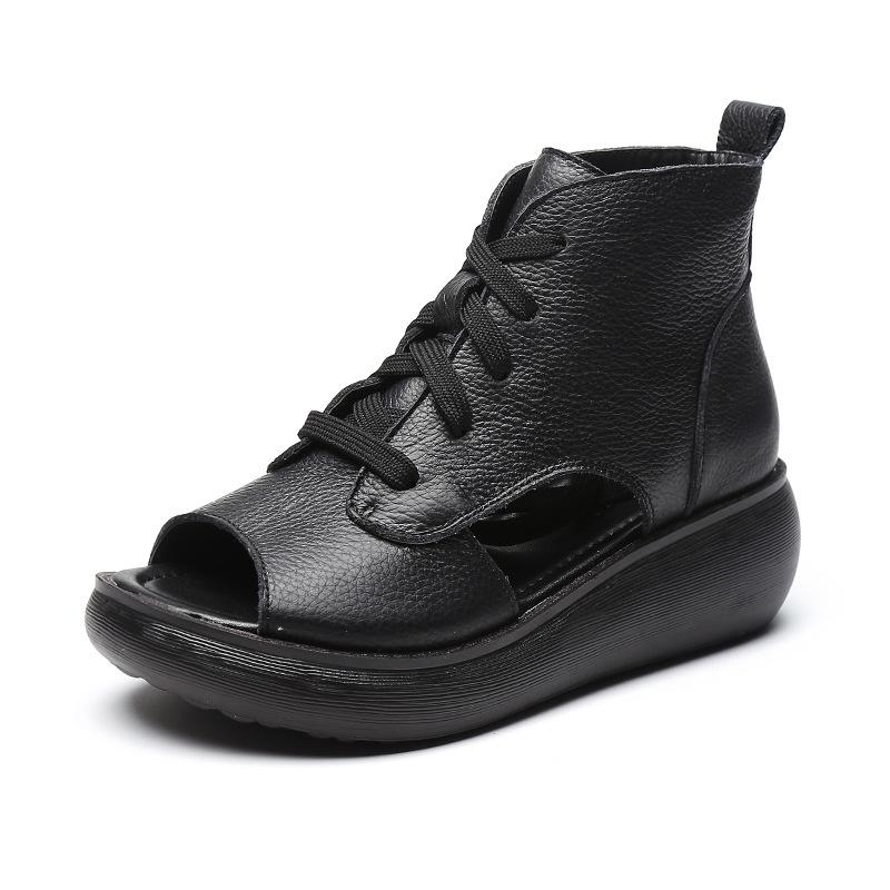 Sandalias de verano de cuero genuino, piel de vaca, suela gruesa, puntera abierta, zapatos de plataforma planos con agujeros, botas romanas frescas para mujer C286
