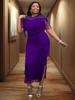 Este elegante vestido de cóctel presenta un elegante escote redondo y una abertura lateral transparente, perfecto para hacer una declaración audaz en cualquier evento.. El vestido está adornado con elegantes decoraciones de flecos que añaden movimiento dinámico y estilo.. Confeccionado íntegramente en poliéster de alta calidad, garantiza un ajuste cómodo y favorecedor.. Ideal para aquellos que buscan combinar sofisticación con un toque de elegancia juguetona.