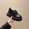 British style small leather shoes women's autumn new lace-up retro versatile small thick-soled black loafers