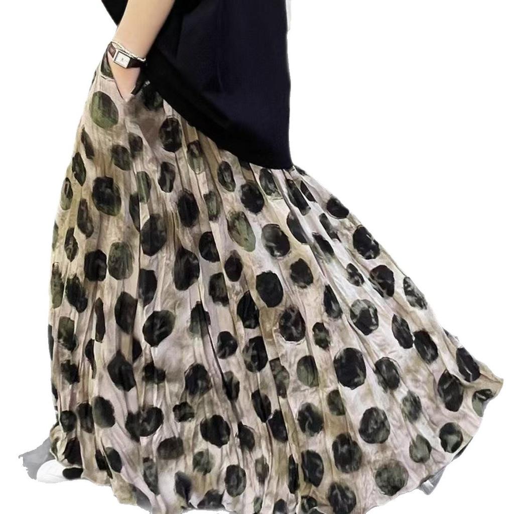 Falda Acampanada para Mujer Falda Larga de Lunares Cintura Alta Talla Grande Fruncida Drapeada A-line Faldas para Niñas