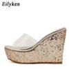 Fashion Eilyken PVC Transparent Lady's Slipper Platform Heel Slides Open-Toe Wedge Slipper Shoes Zapatillas De Mujer