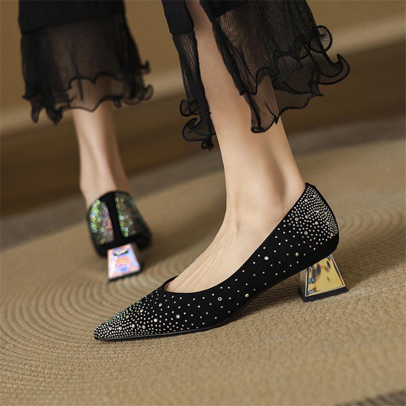 Fashion New Spring/Summer Sheep Suede Women Pumps Shoes for Women Fashion Hot Fix Pointed Toe Loafers Shoes Women Chunky Heels Ladies