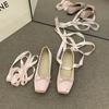 Fashion New Women Bow Tie Cross Ballet Flats Shallow Female Sweet Dancing Mary Jane Square Toe Ladies Single Shoe Party Outside