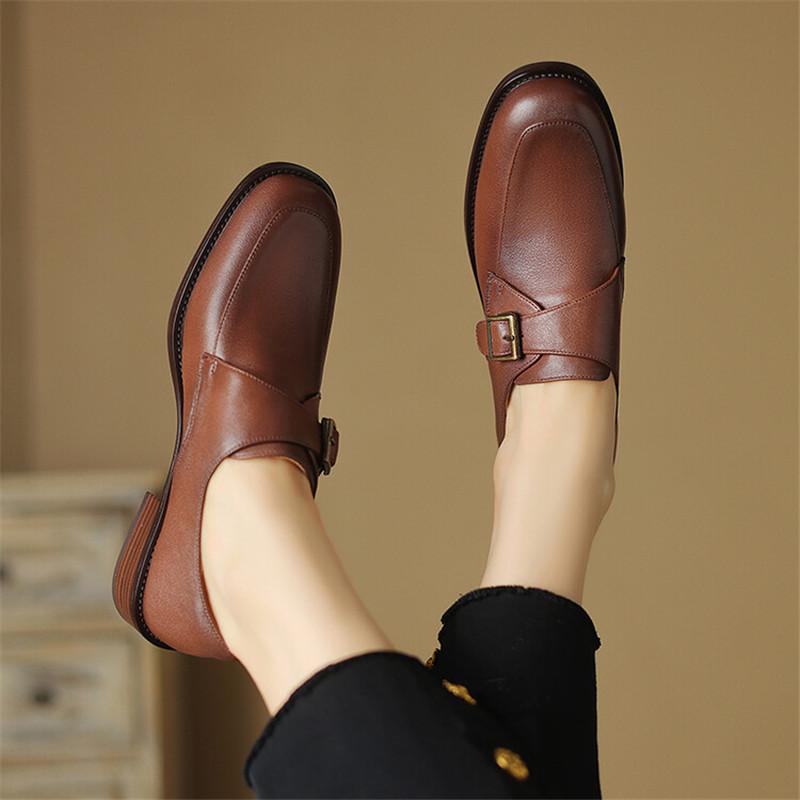 Fashion 2024 Spring Women Shoes Round Toe Chunky Heel Women Pumps Shoes for Women Genuine Leather Loafers Ladies Shoes Zaptos Mujer