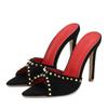 Moda Eilyken Nuevo Diseño Denim Zapatillas de Remaches Mujer Puntera Puntiaguda Zapatos de Diapositiva Moda Fiesta Baile de Graduación Tacones Finos de Aguja Sandalias