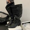 Fashion Eilyken 2025 New Fashion Pointed Toe Women Knee-High Boots Design Button Strap Square Low Heels Party Dress Shoes