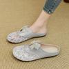 2025 New Closed Toe Women's Slippers Sequins New Mesh Plus Size Summer Outdoor Soft Bottom Butterfly-knot Flat Slippers