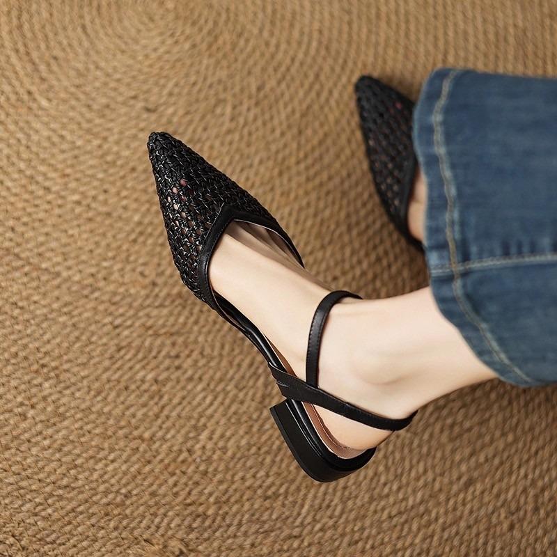 Fashion 2025 Temperament Retro Cutout Breathable Baotou Sandals Women's Flat Summer New Pointed Toe Fashion Low Heeled Shoes