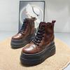 Zapatos de Moda de Caña Alta para Mujer Cuero Genuino Botas de Plataforma de 12 cm Botines de Cuña al Tobillo Tacón Oculto Cremallera Otoño Cálido Piel Zapatos de Invierno Zapatillas