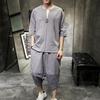 Men's Summer Linen T-Shirt & Seven-Point Pants Hanfu Set - Loose Fit, Plus Size