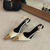Moda SUOJIALUN 2025 Primavera Sandalia Elegante de Dama con Puntera Metálica Dorada Nueva Marca Zapatos Slingback Poco Profundos Sin Cordones Tacón Alto Fino Zapatos de Vestir