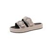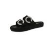 Fashion Crystal Metal Buckle Flip-Flops Women's Fashion Round Toe Open Toe Flannelette Slip Strap Soft Sole Non-Slip Plus Size Flats