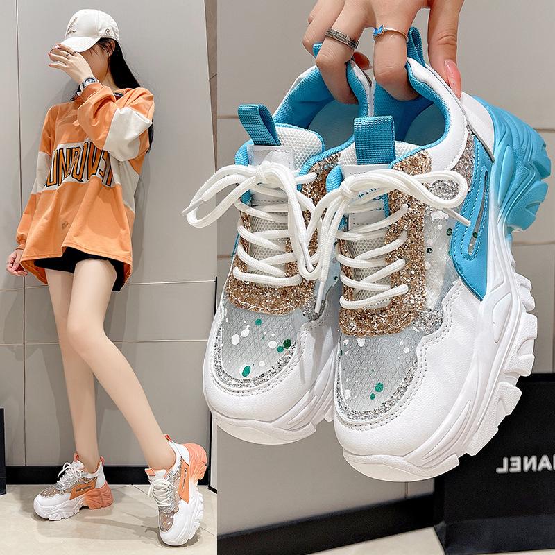 New board shoes summer season casual thick-soled wear-resistant mesh color matching student dad shoes college style