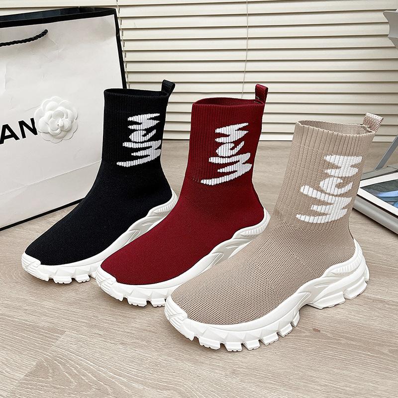 Calcetines zapatos de mujer primavera nuevas botas cortas tejidas con mosca suela gruesa y elástica suela gruesa punto zapatos deportivos y de ocio botas