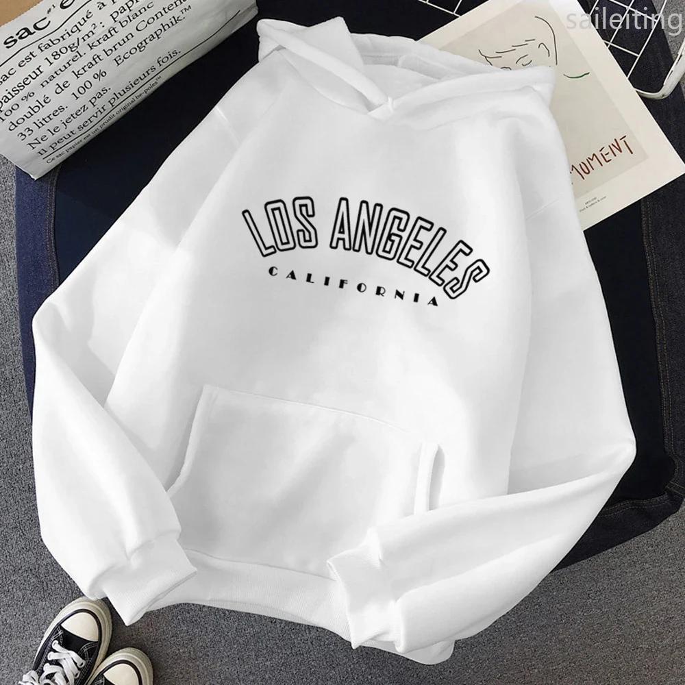 Los Angeles Kangaroo Pocket Hoodie Letter Print Sweatshirts Women Los Angeles Casual Long Sleeve Hiphop Streetwear Harajuku