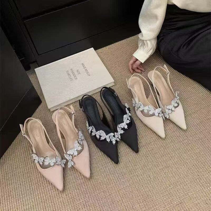 Pointed temperament single shoes bag head sandals women's new design sense back stiletto evening high heels