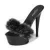 Moda Nuevas zapatillas pelo de conejo tacón fino sexy negro plataforma impermeable odio tacones super altos cielo alto sandalias de verano para mujer