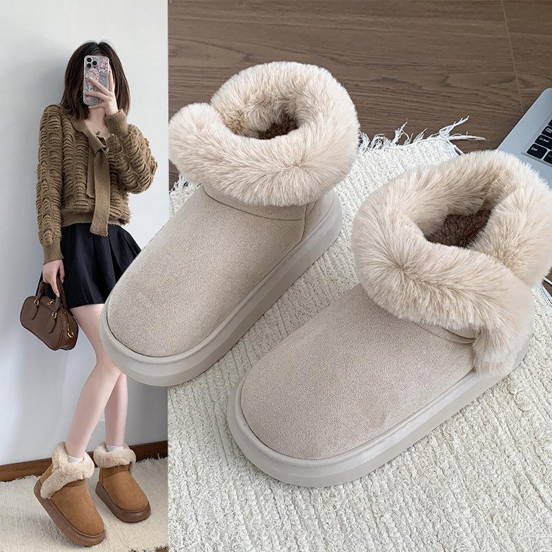 Fashion New Winter Thick-soled Mid-calf Warm Shoes Wear-resistant Comfortable and Fashionable Women's Boots Flat-soled Velvet Snow Boots