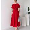 Elevate your wardrobe with our stunning 2024 Spring/Summer Pleated Drawstring Women's Maxi Dress. Crafted from high-quality polyester, this dress promises both comfort and style. The solid color design makes it versatile for various occasions, while the pleated detailing adds a touch of elegance. The drawstring waist allows for a customizable fit, ensuring you feel confident and comfortable all day long. Perfect for warm-weather events, this maxi dress is a timeless addition to any fashion-forward woman's collection.