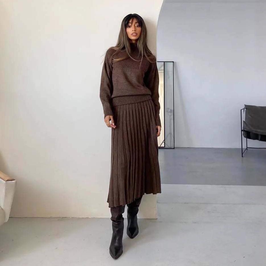 Women's 2025 Autumn Fashion: European & American Style Loose Knit Sweater Dress with Half-High Collar