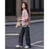 Demana Elegant Lantern Sleeve Color Block Knit Top