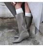 Cowhide version~ autumn and winter new Korean version of simple square head versatile temperament low heel knight boots women's sleeve medium